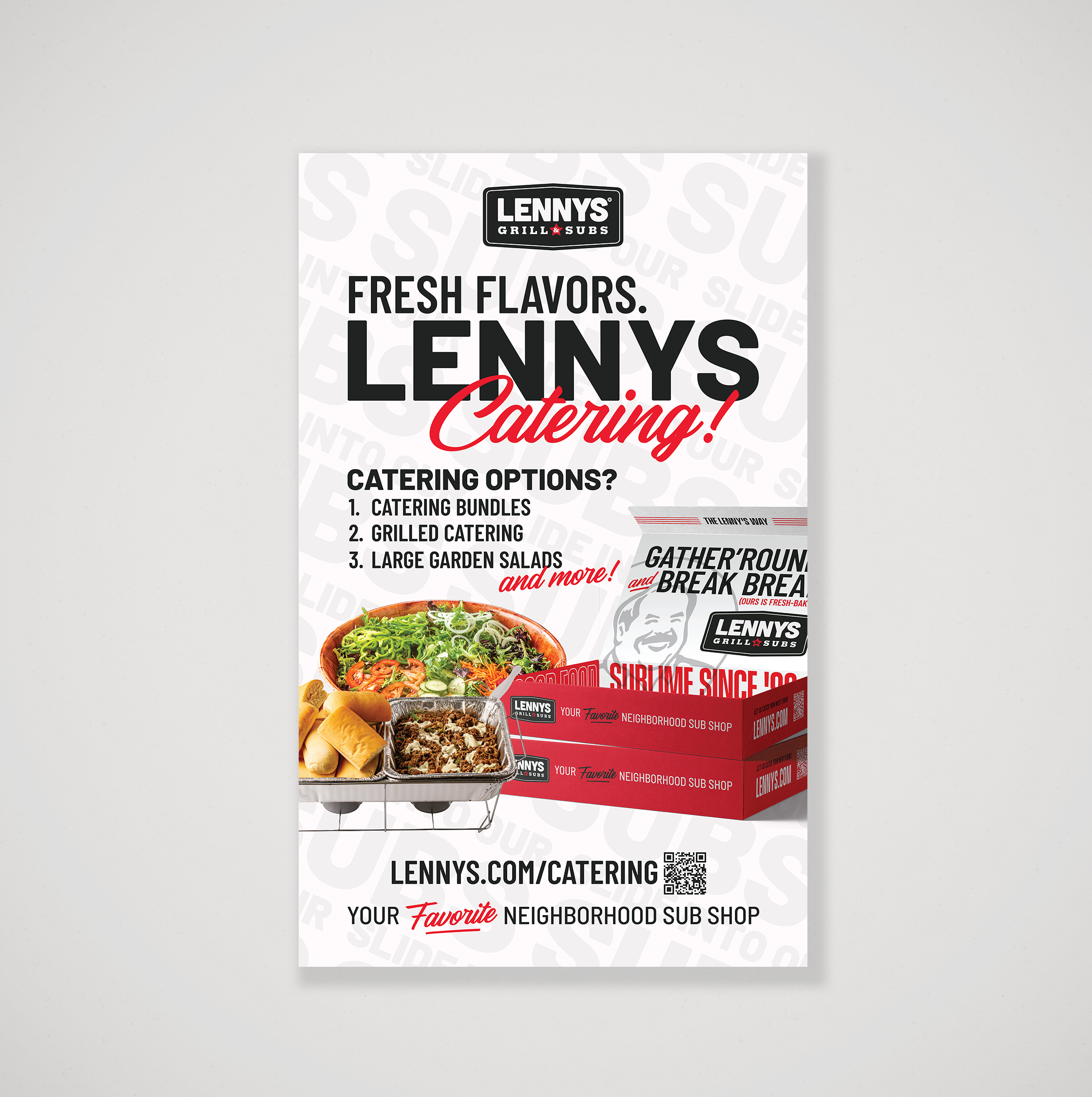 Franchisees struggled with accessing consistent, brand-approved local store marketing (LSM) materials. Requests for event flyers, coupons, business cards, and promotional signage were often unmet due to a lack of streamlined support from corporate. As a result, many franchisees resorted to creating their own materials, leading to inconsistent designs that strayed from Lennys’ brand standards. Over time, this disconnect caused a lack of trust in the corporate marketing team and limited the effectiveness of local promotions.